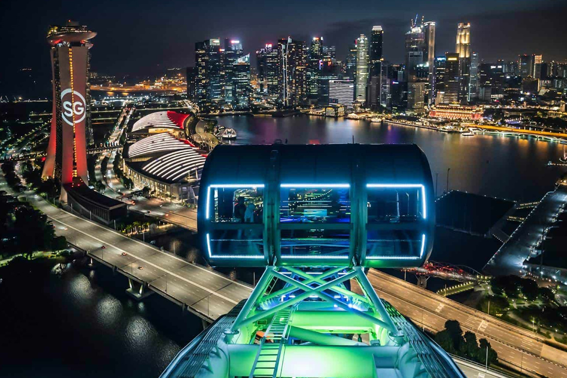 Lifting you 540 feet (165 meters) into the air, the Singapore Flyer is Asia’s largest observation wheel, providing amazing panoramic views of the city, the sea, and the surrounds from one of 28 capsules.